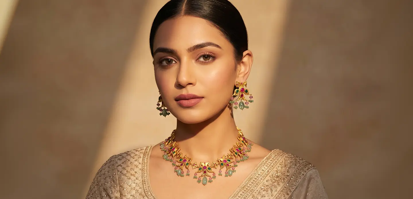 Our collections embody modern design sensibilities while drawing inspiration from the rich traditions of Indian artistry. From the grandeur of temple motifs to the subtlety of contemporary silhouettes, every creation captures the essence of balance between elegance and expression, artistry and emotion.